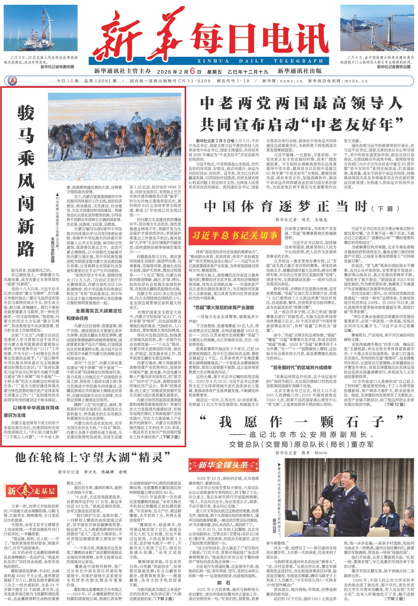 2026年2月6日,《新华每日电讯》头版刊发题为《骏马乘风闯新路》的文章,报道了启航“十五五”,内蒙古以“1571”工作部署为总抓手,弘扬蒙古马精神,落实战略定位、聚焦高质量发展,奋力书写中国式现代化内蒙古新篇章。