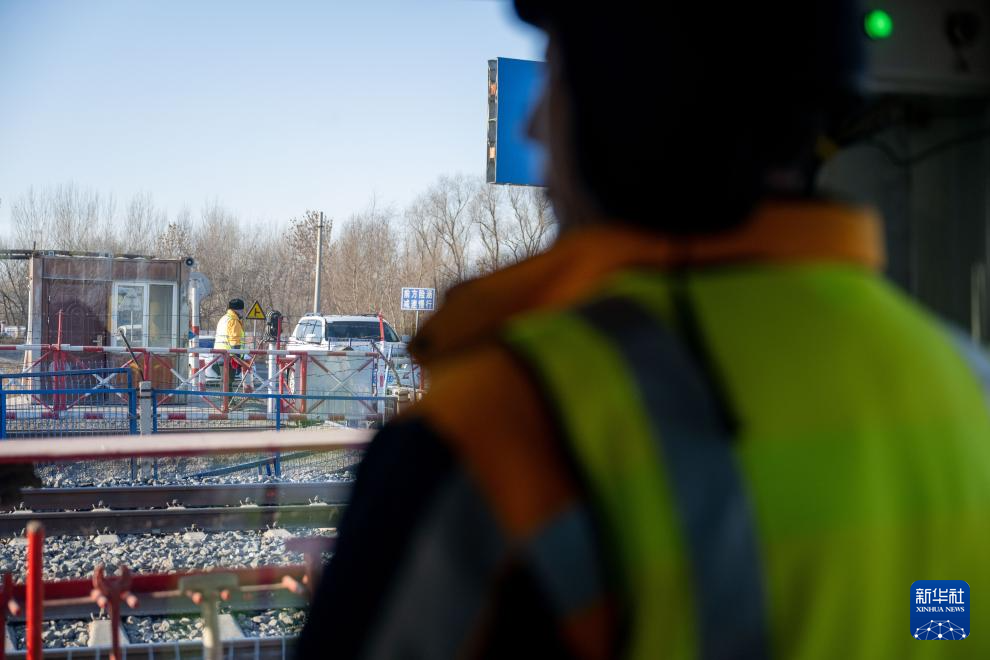 2月1日,工人张浩在道口值班。新华社记者 连振 摄