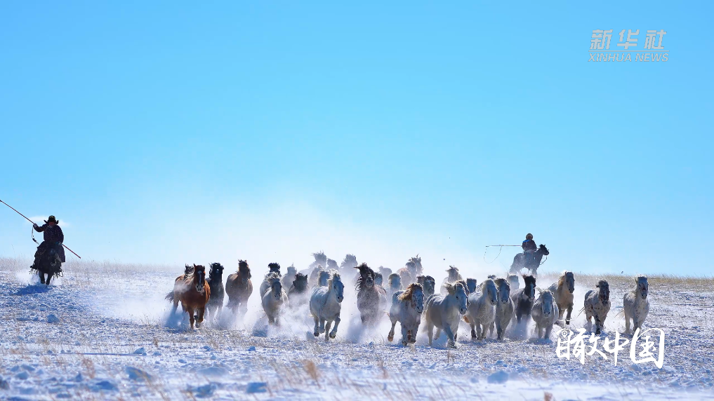 牧马人手持套马杆策马疾驰,追逐着奔腾的马群。逆光之下,马鬃随风翻飞,马蹄溅起的雪雾与光影交织,勾勒出一幅壮美的水墨群马图。草原儿女以最豪迈的姿态迎接马年的到来,诉说着对新岁的美好期许与祝福。