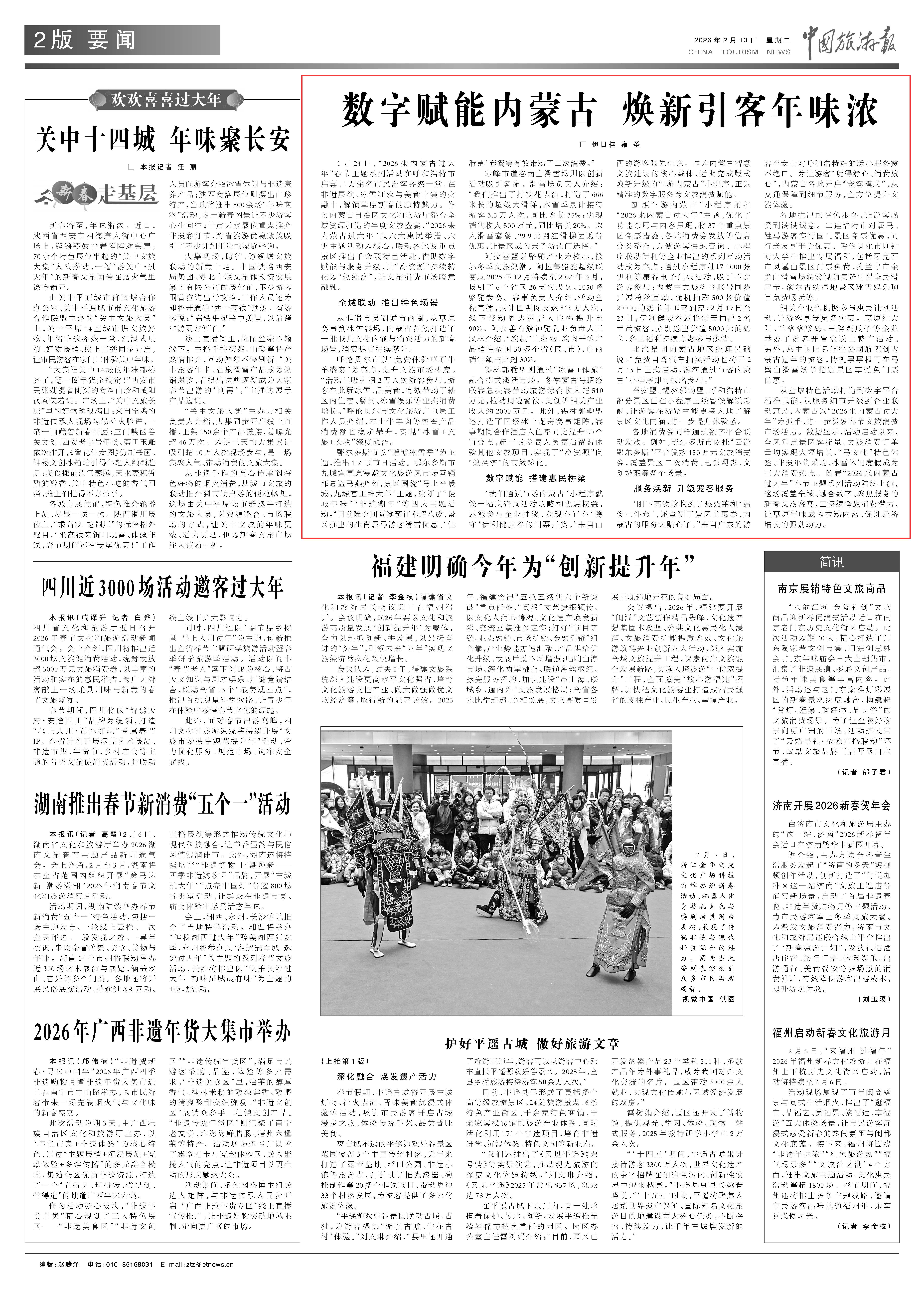 从全域特色活动打造到数字平台精准赋能,从服务细节升级到企业联动惠民,内蒙古以“2026来内蒙古过大年”为抓手,进一步激发春节文旅消费市场活力。数据显示,活动启动以来,全区重点景区客流量、文旅消费订单量均实现大幅增长,“马文化”特色体验、非遗年货采购、冰雪休闲度假成为三大消费热点。随着“2026来内蒙古过大年”春节主题系列活动陆续上演,这场覆盖全域、融合数字、聚焦服务的新春文旅盛宴,正持续释放消费潜力,让草原年味成为拉动内需、促进经济增长的强劲动力。(伊日桂 雍圣)