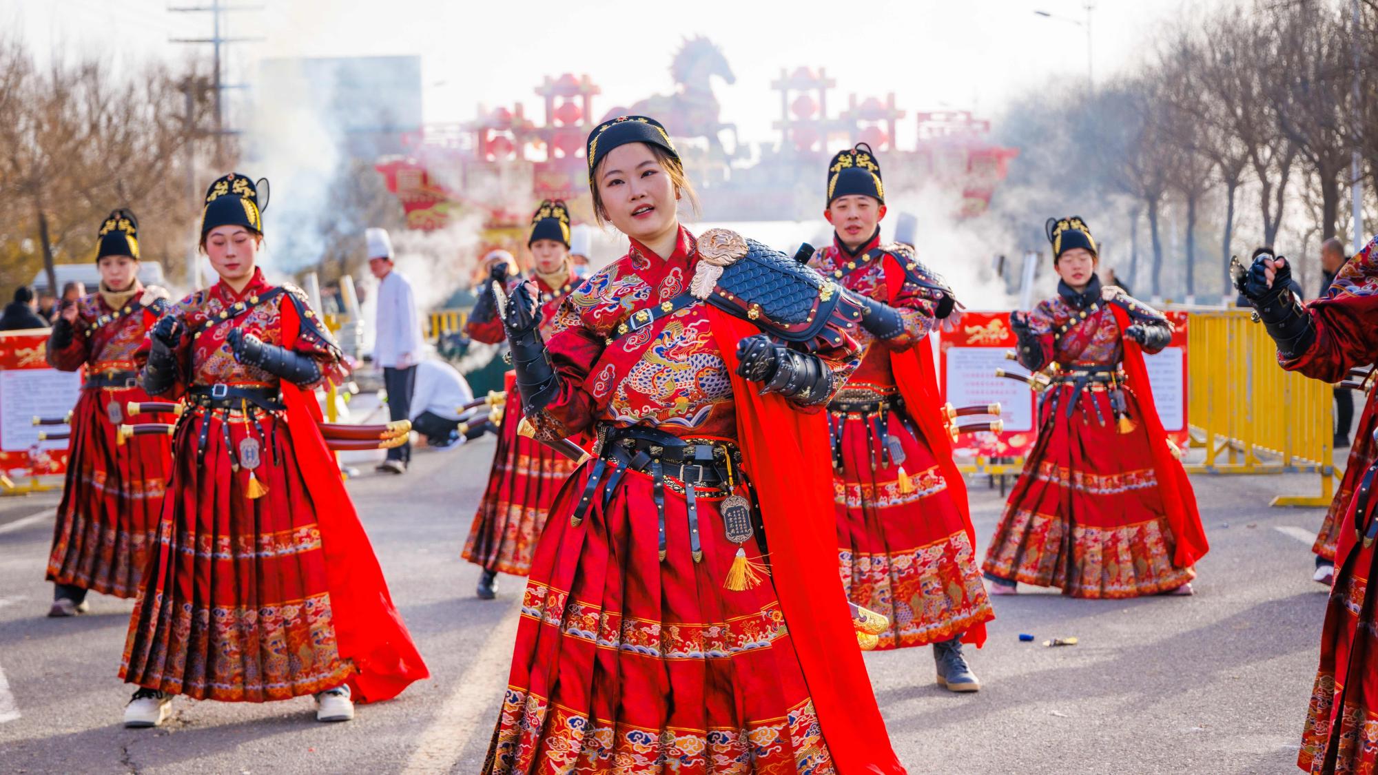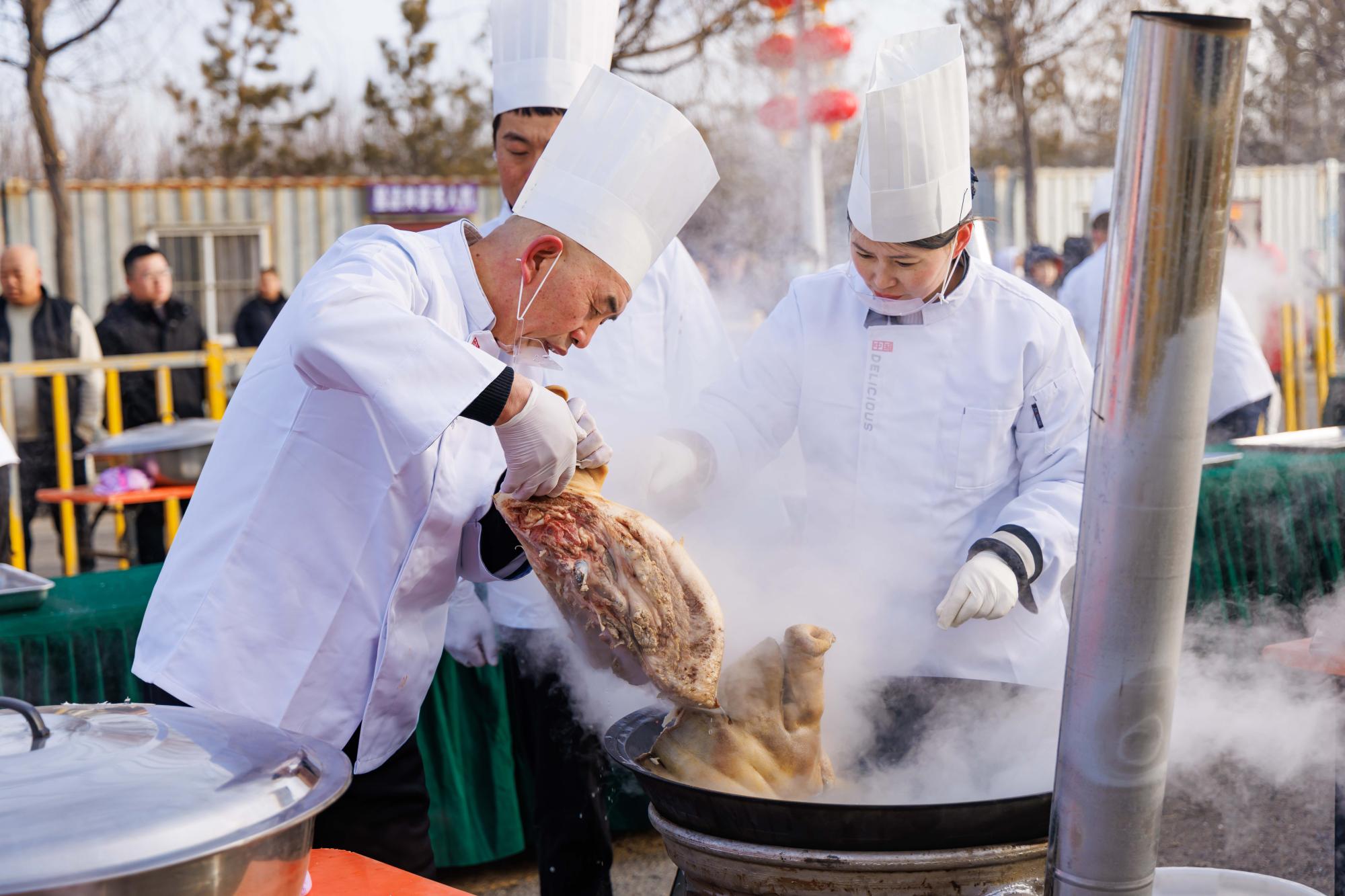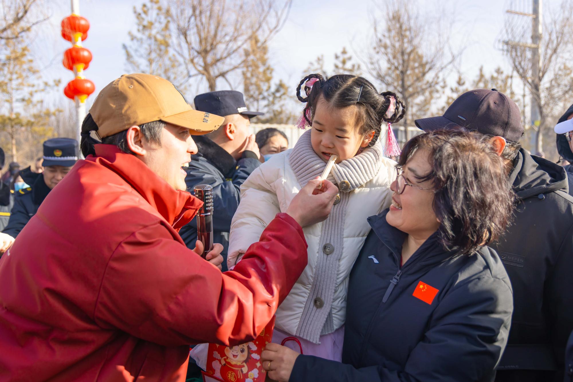 非遗文化的传承是本次灯展的一大亮点。作为内蒙古自治区非物质文化遗产的寿阳鼓,在现场奏响了穿越三百年的激昂旋律。鼓手们轮番上阵,鼓、铙、钹交替呼应,时而低慢沉稳,时而铿锵激昂,将“鼓声越洪亮,日子越红火”的民俗寓意传递给在场每一位观众。鼓点声中,热气腾腾的托县特色猪头肉在主持人的宣布下下锅,香气扑鼻;地道香甜的黑城麻糖被小朋友们含在口中,甜润入心,这一口舌尖上的年味,既承载着“二十三,糖瓜粘”的祭灶民俗记忆,也蕴含着对富足生活的美好期盼。