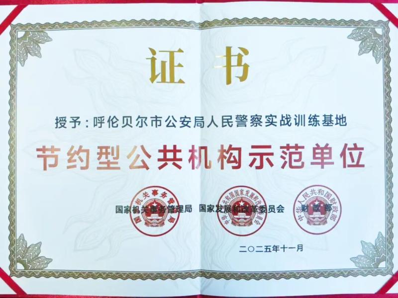 此次获三部委联合授予国家级荣誉,是对基地前期工作的充分肯定,更是对未来发展的激励与鞭策。下一步,呼伦贝尔市公安局人民警察实战训练基地将以此为契机,持续深化节约型机关建设,总结提炼可复制、可推广的经验做法,充分发挥示范引领作用,在绿色低碳转型、能源资源高效利用等方面再出新成效,为建设生态优美、节约高效的现代化公安训练基地注入新动能,以实际行动为全市公共机构节能工作贡献公安力量。(呼伦贝尔市公安局)