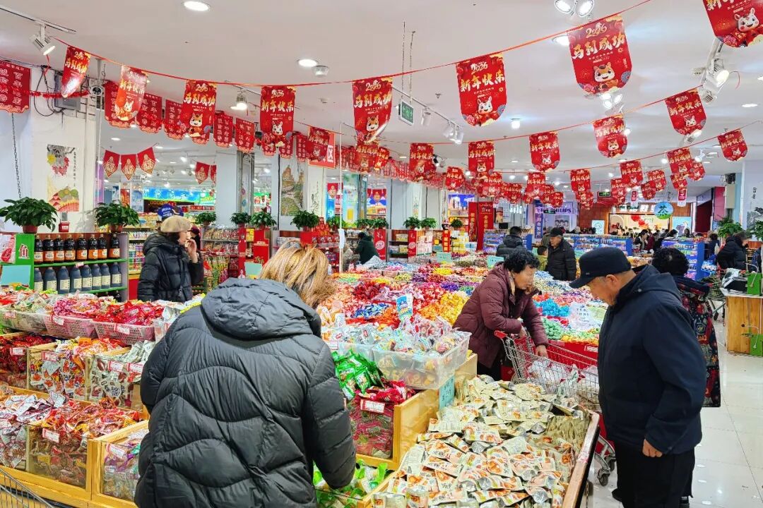 联营超市负责人杨晓燕告诉记者:“为保障春节期间商品供应充足,我们提前一个月就启动备货。超市干果、糖果、礼盒等各类年货品种齐全,同时我们根据人流情况,增开收银通道、打秤点位,全力满足市民采购需求。目前,客流量和销售额较平日增长明显,消费热度持续攀升。”