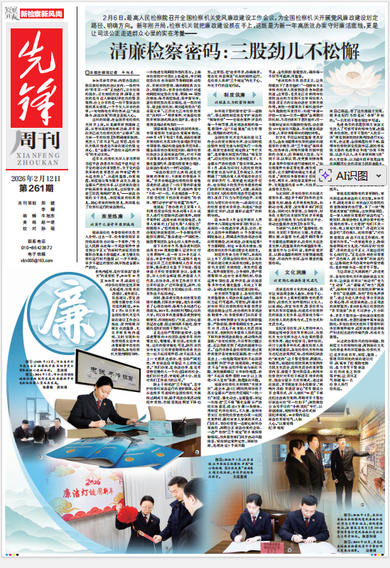 2026年2月12日《检察日报》05版刊发了《清廉检察密码:三股劲儿不松懈》的文章,报道了新年刚开局,各地检察机关就把廉政建设抓在手上,这既是为新一年高质效办案守好廉洁底线,更是让司法公正走进群众心里的实在考量,并特别报道了内蒙古自治区敖汉旗检察院“开年第一课”,让“廉洁修身、廉洁办案”的理念直抵人心。
