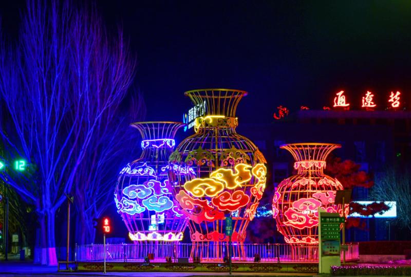 灯火织春迎马岁,长街溢彩醉通辽。随着春节脚步的临近,通辽市城区街头年味愈发浓郁,大街小巷,公园广场,缤纷霓虹灯与骏马造型景观灯同步点亮,勾勒出一幅璀璨的迎春画卷。漫步街头,道路两侧的树木被彩灯串缠绕,红绿交织的光芒在夜色中格外醒目,形状各异的大红灯笼高悬枝头,传递着吉祥喜庆的美好寓意,骏马造型的景观灯,昂首奔腾的姿态既契合马年新春的主题,又彰显通辽昂扬向上的城市活力。璀璨灯火不仅扮靓了城市夜景,更温暖了市民的心田,让市民提前沉浸在春节的喜悦之中,也为即将到来的马年新春增添了浓厚的仪式感。