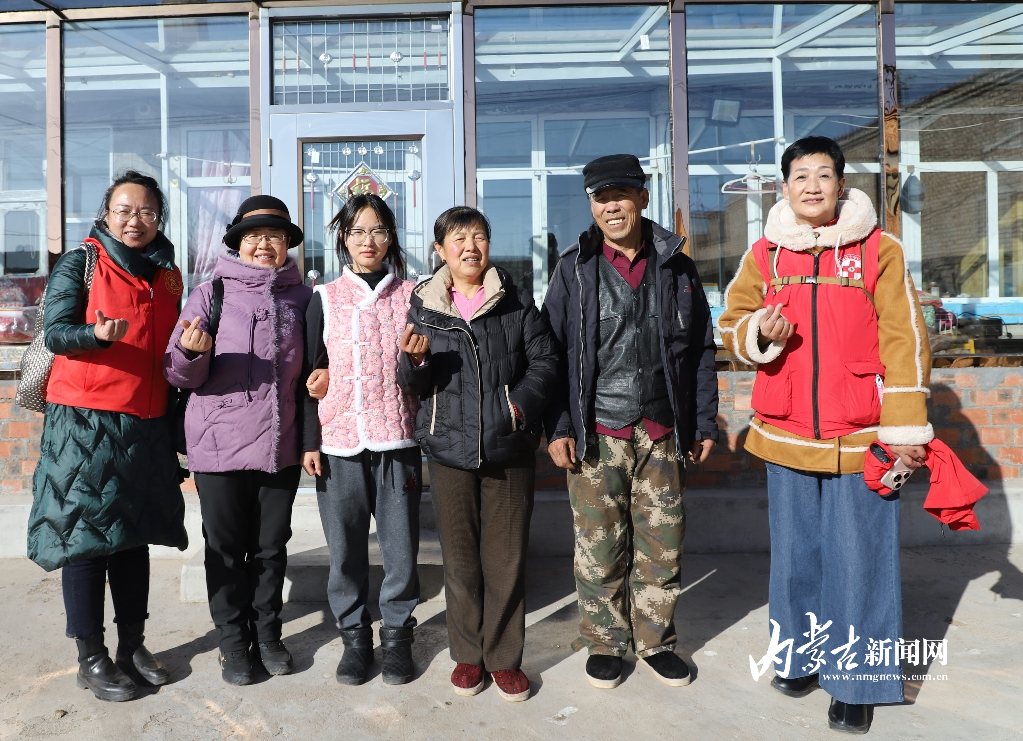 志愿者看望小燕(左三)及家人