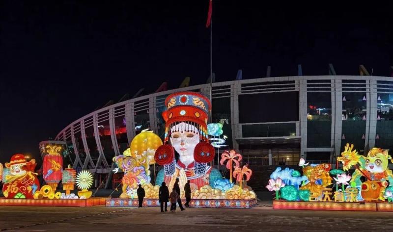 体育场内,“盛装贺新岁”“喜上眉梢”“万家灯火”“丝路画境”等大型灯组集中亮相,福袋、幸运环、雪花、云朵树挂点缀其间,美轮美奂。丝路广场“二龙戏珠”灯组气势夺人,生命树灯饰熠熠生辉,中国风灯饰与羊皮灯笼相映成趣,尽显古朴雅致。
