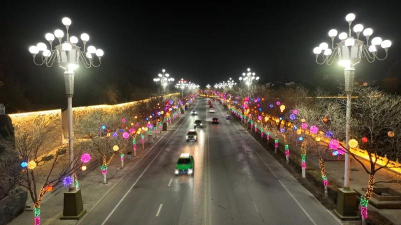 夜晚漫步在巴彦浩特主要街道,只见发光跨界灯时尚亮眼,各条主次干道上树挂灯错落有致,暖黄、中国红、流光蓝交织,为新春佳节增添了一抹浓浓的喜庆氛围。