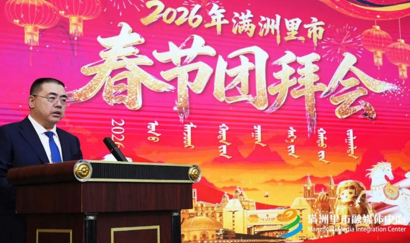 灵蛇辞旧岁,瑞马迎新春。2月12日,满洲里市举行2026年春节团拜会。呼伦贝尔市人大常委会主任、满洲里市委书记于伟东出席并致辞。满洲里市委副书记、市长岳国栋主持。