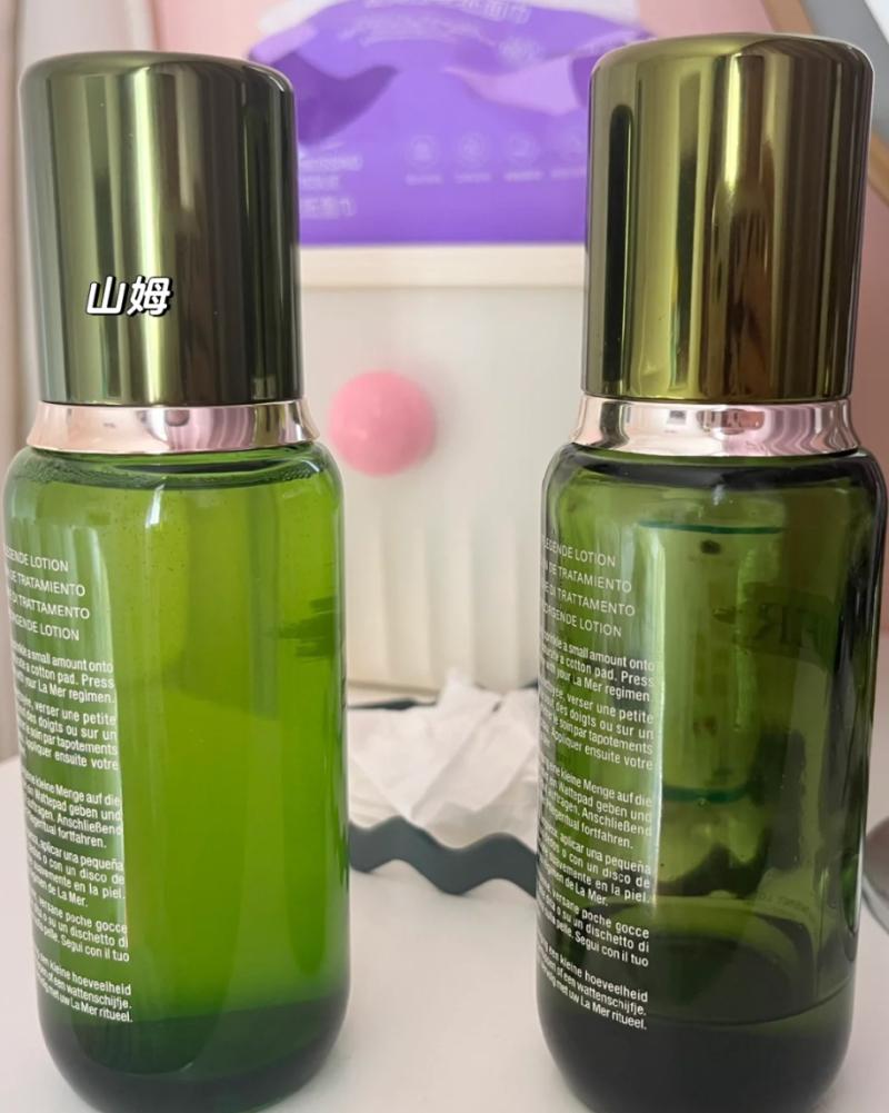 沈先生称,自己拿到手的精粹水,是仿制很低劣的假货,同批次的海蓝之谜精粹水已经在包装上做出改变,自己拿到的这个仍是旧包装。