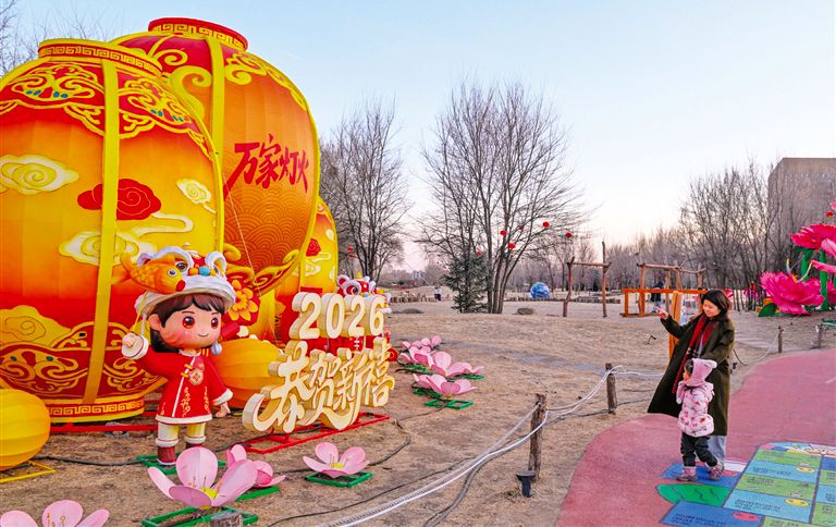 2月15日,市民游客在呼和浩特市赛罕区小草公园观赏彩灯。2026小草公园新春游园灯会以“马上相逢 温暖赛罕”为主题,深度融合传统年俗韵味与现代创新理念,通过三大沉浸式板块,串联起18组承载“马上吉祥”“福满人间”等美好寓意的主题灯组,为市民与游客献上一场兼具传统年味、未来光影与互动潮玩的新春视觉盛宴。草原云·内蒙古新闻网记者 王磊 摄