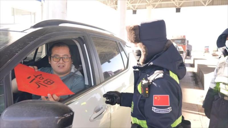 “他们真的很辛苦,这么冷的天24小时守在这里,保障我们的安全。”返乡司机张谦拿着民警送来的福字说:“有他们在,我们特别踏实!祝他们新年快乐、平平安安,也祝所有坚守一线的民警们过一个幸福年。”