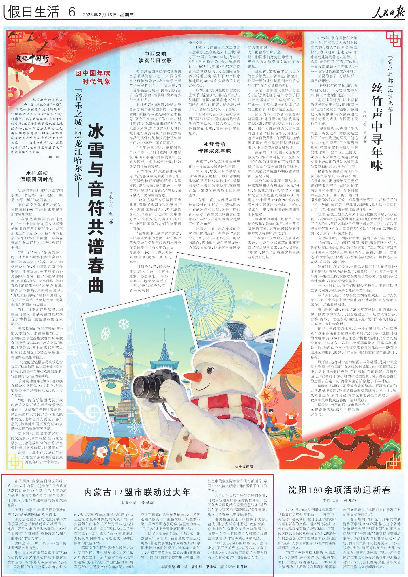 2026年2月18日,《人民日报》第6版刊发题为《内蒙古12盟市联动过大年》的文章,报道了“2026来内蒙古过大年”春节系列活动联动全区12个盟市,致力于为游客呈现一场贯穿整个春节,融合传统年味、潮玩元素与奇趣冰雪的新春文旅盛宴。