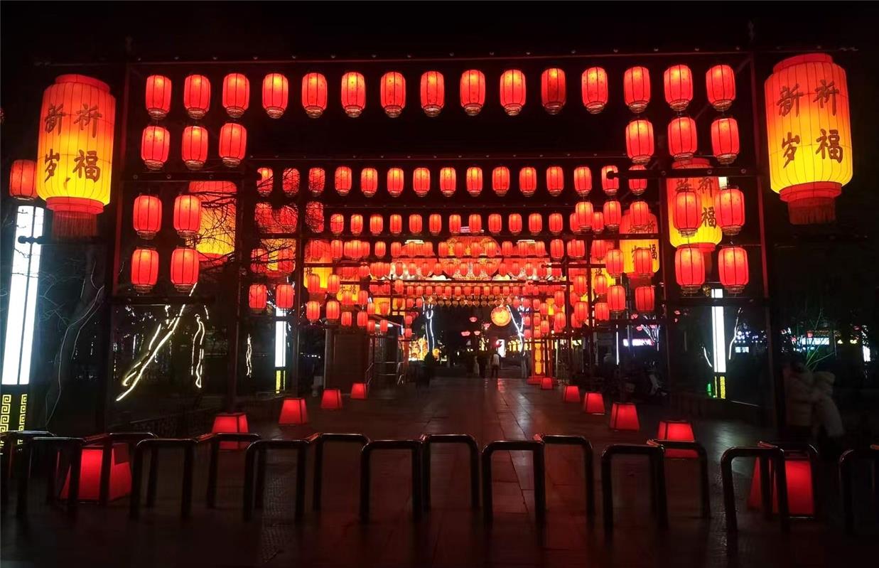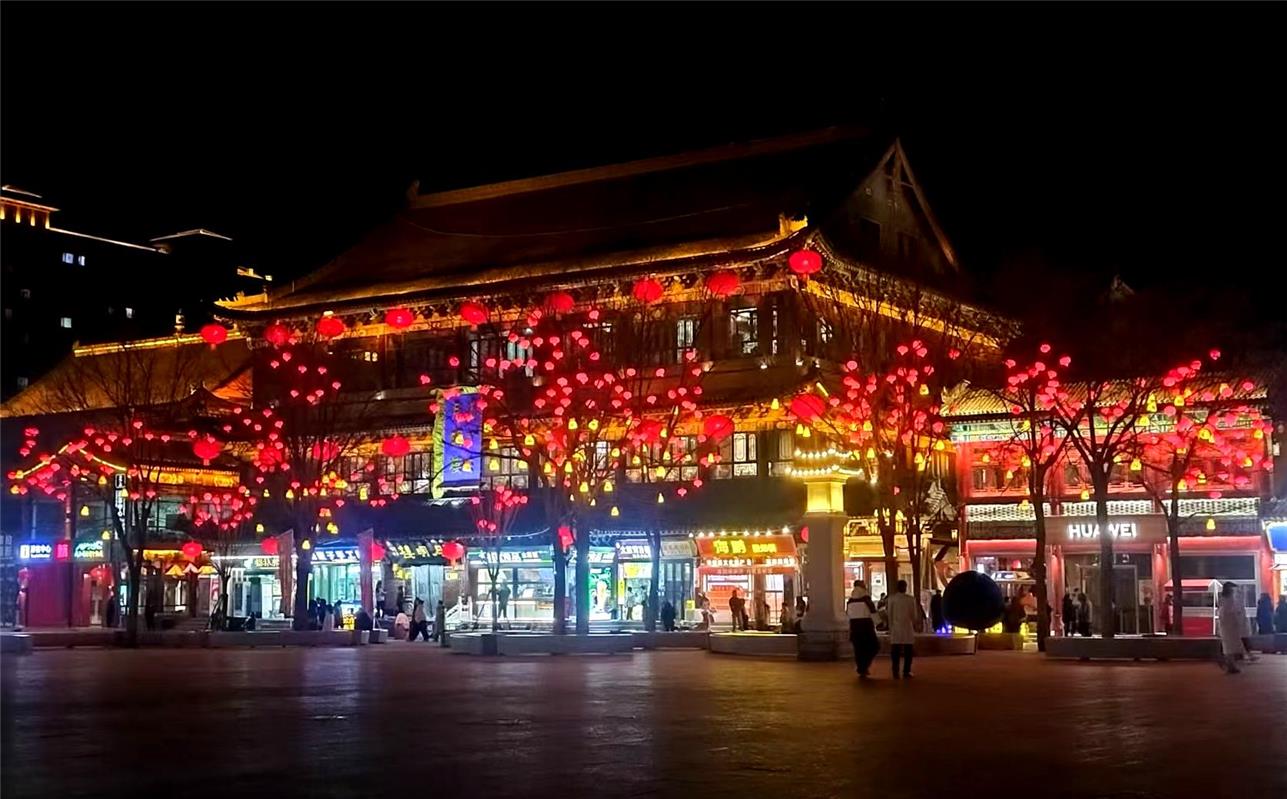 节日期间,流光溢彩的塞上老街。