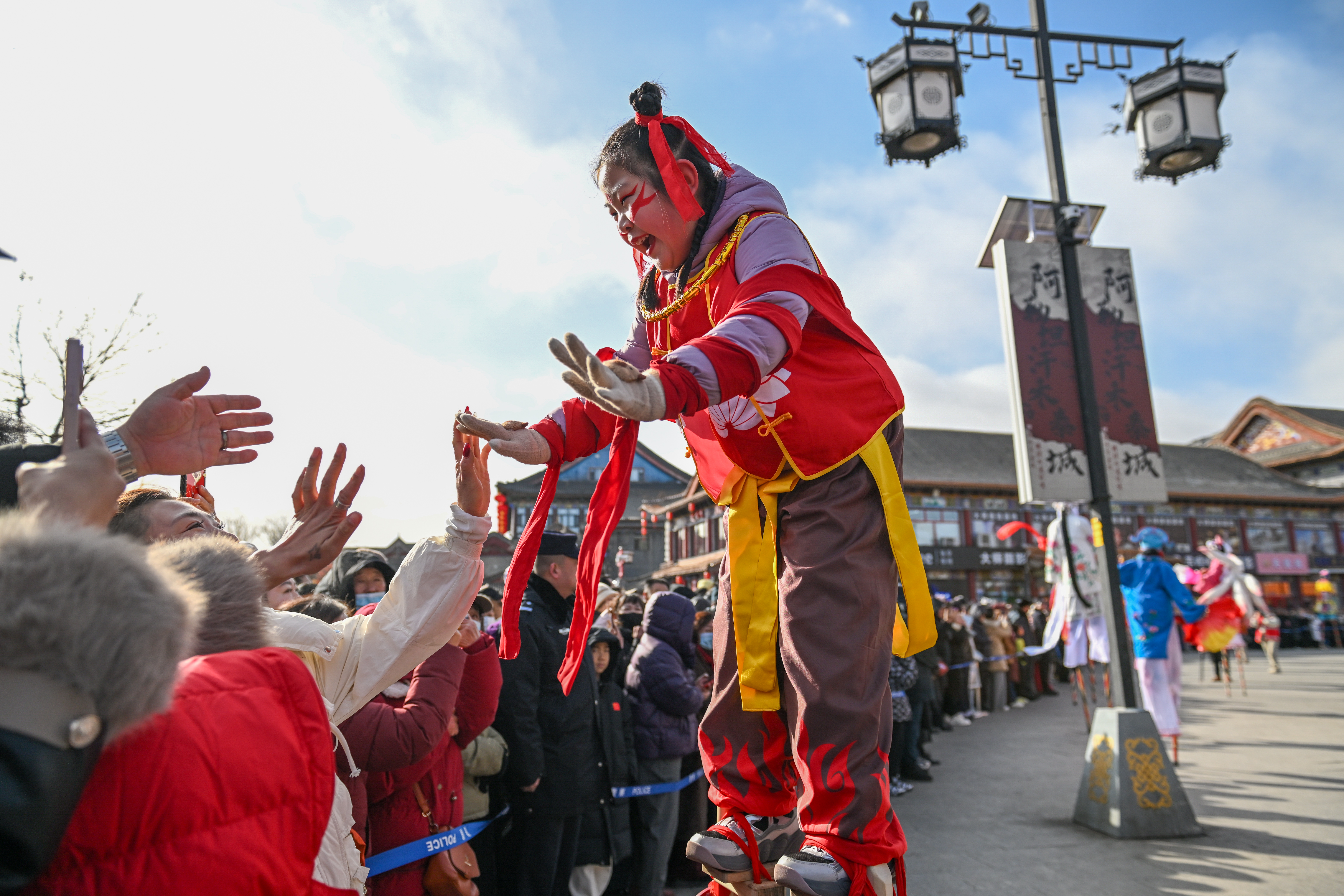 塞上老街活动以“非遗社火奏春歌”进行热场。