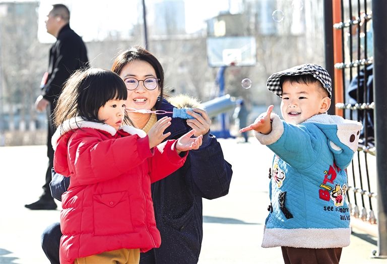 2月24日,呼和浩特市民在万和体育公园内游玩。连日来,呼和浩特气温回升,处处洋溢着轻松温馨的春日气息,不少市民带着孩子来到户外奔跑嬉戏,在明媚春光里享受户外运动的快乐。草原云·内蒙古新闻网记者 孟和朝鲁 摄