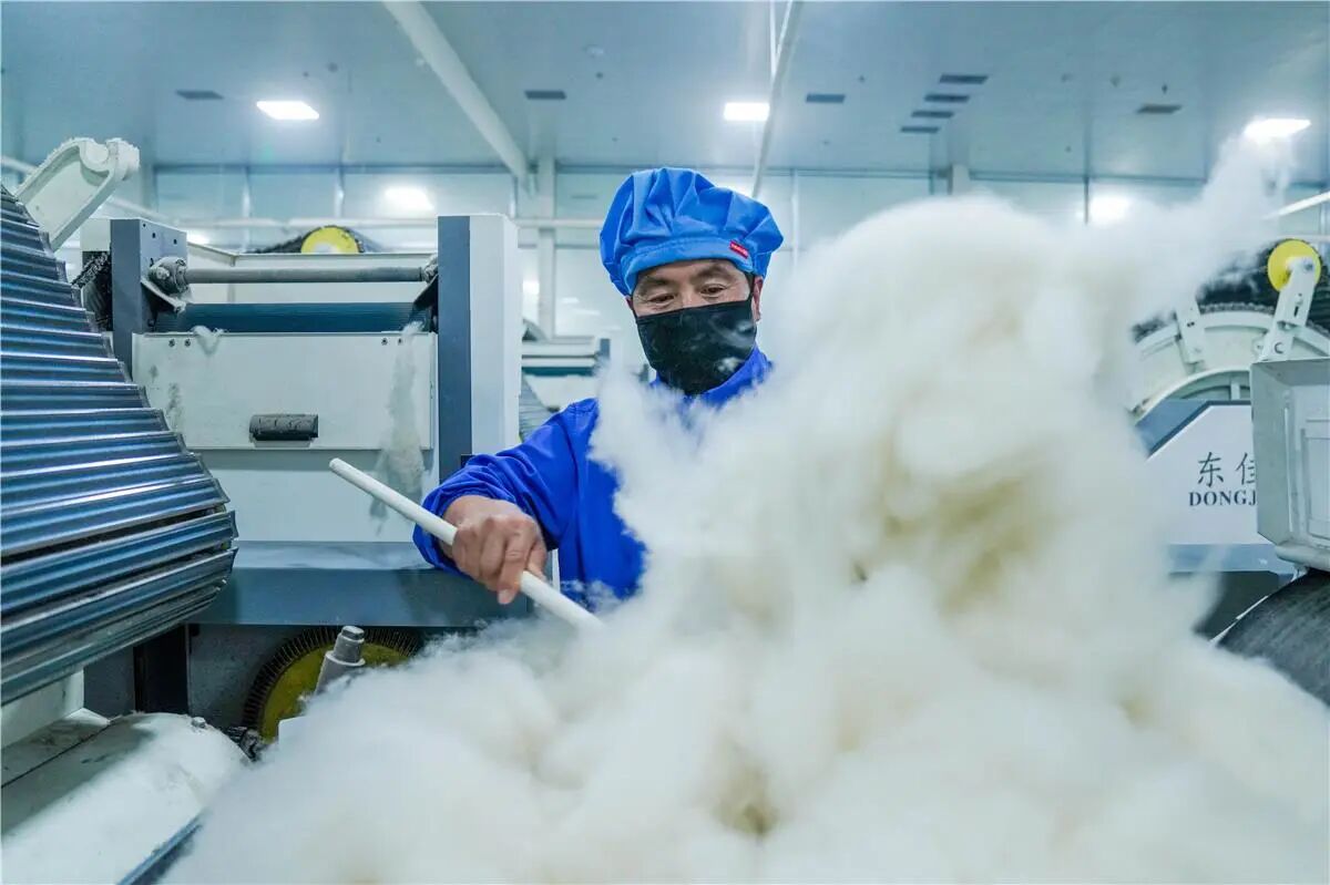 在赤峰东黎羊绒股份有限公司生产车间,记者看到,这里机器轰鸣、人影穿梭,全自动智能编织生产线高速运转,工人专注地盯着屏幕上的参数,指尖轻点间,一缕缕羊绒被织成春的暖意。