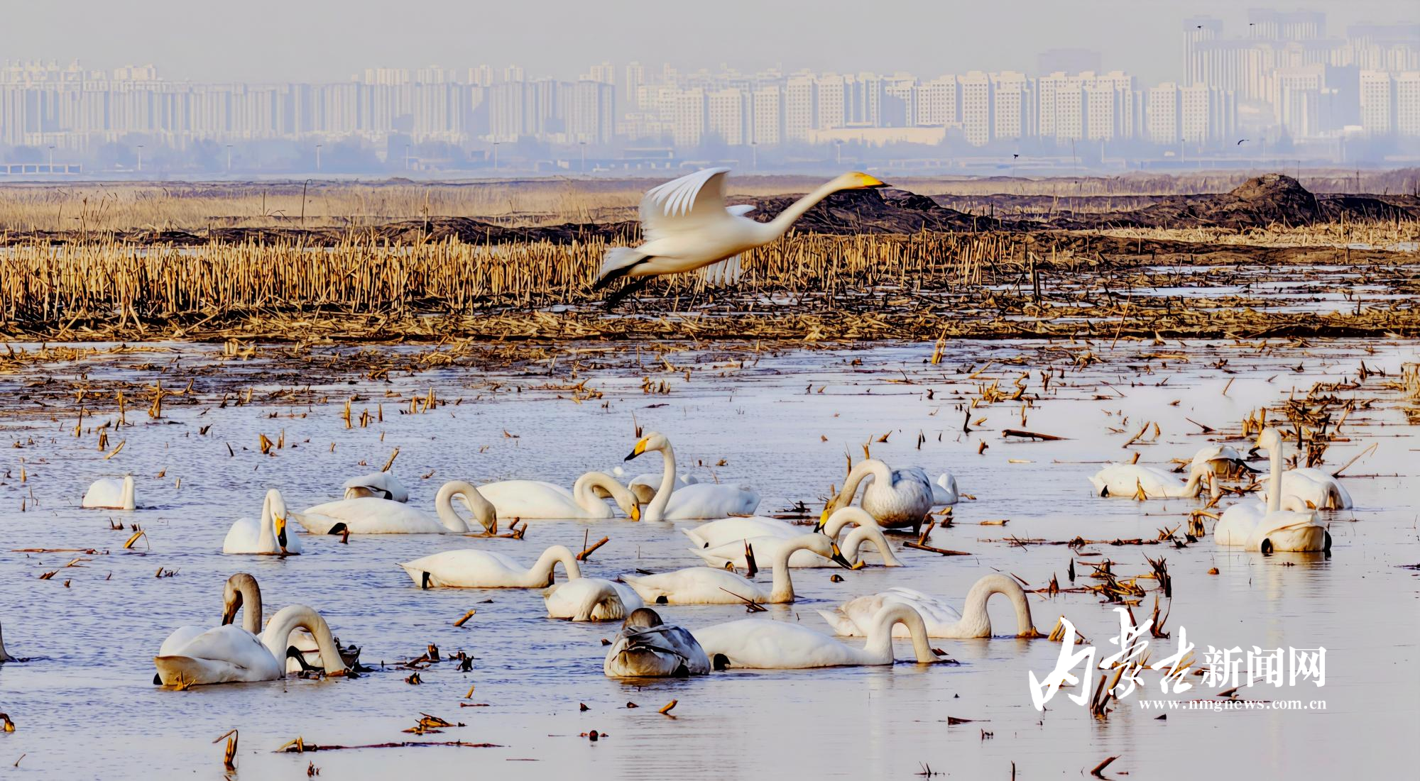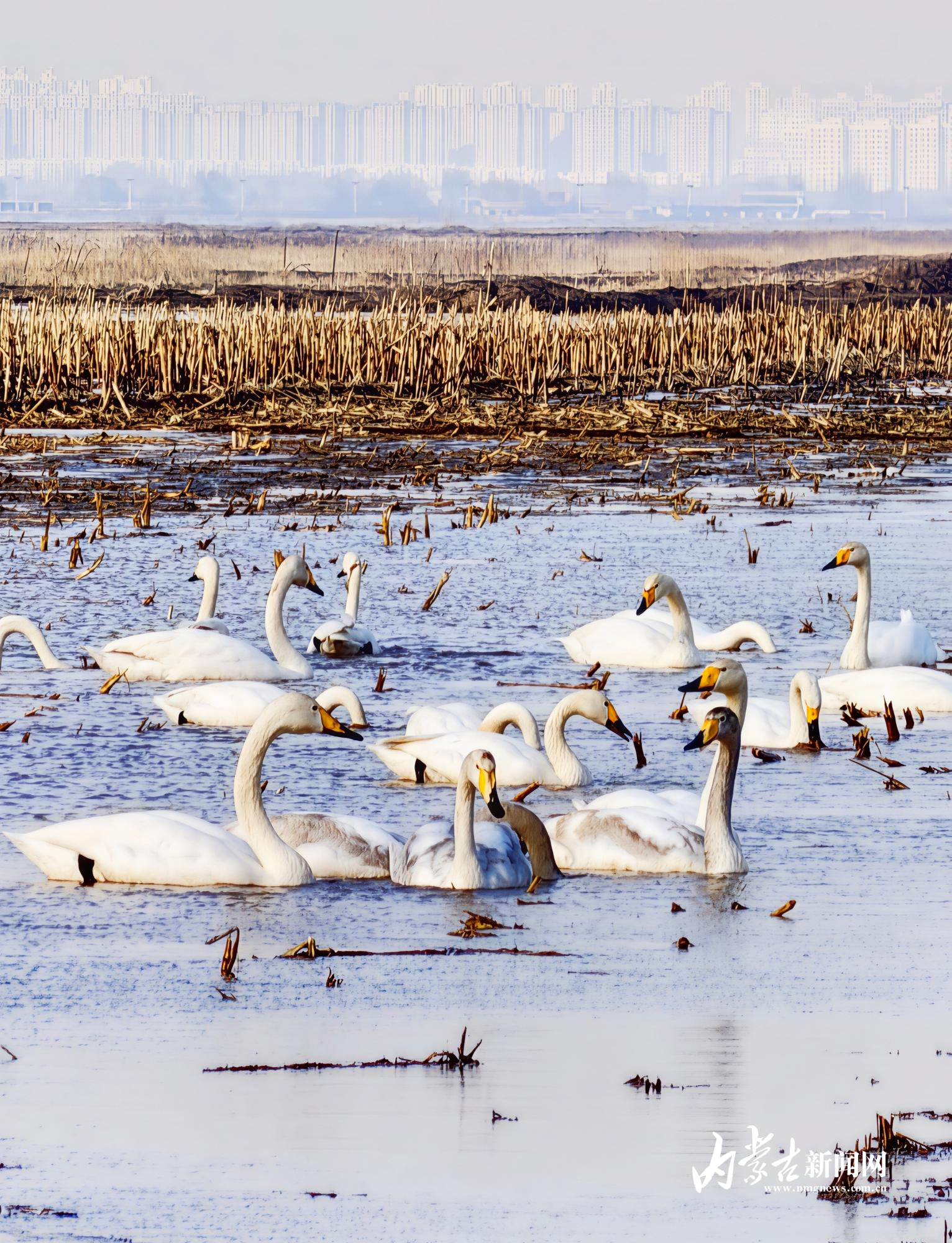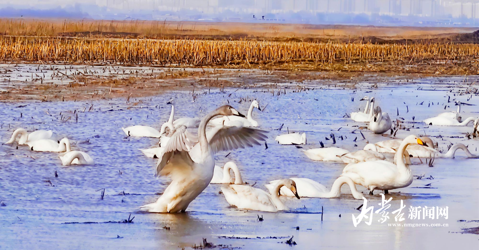 本网讯(草原云•内蒙古新闻网记者 周 蕾)初春时节,在黄河流淌着活水的滩地里,大群天鹅正沐浴着阳光在水中嬉戏……2月27日,大批天鹅飞临包头黄河国家湿地公园、南海湿地以及土默特右旗等沿黄岸线,它们或在水面游弋采食,或伸展脖颈梳理羽毛,带来无限活力与诗意。