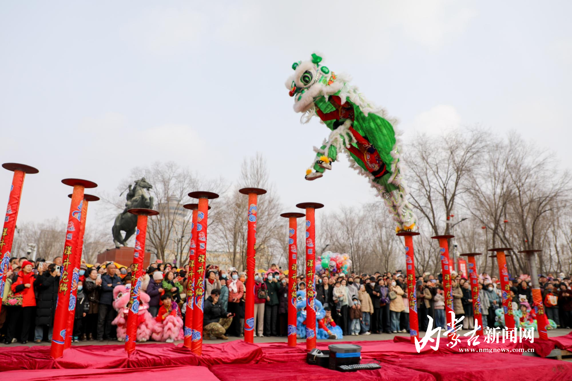 舞狮上演梅花桩