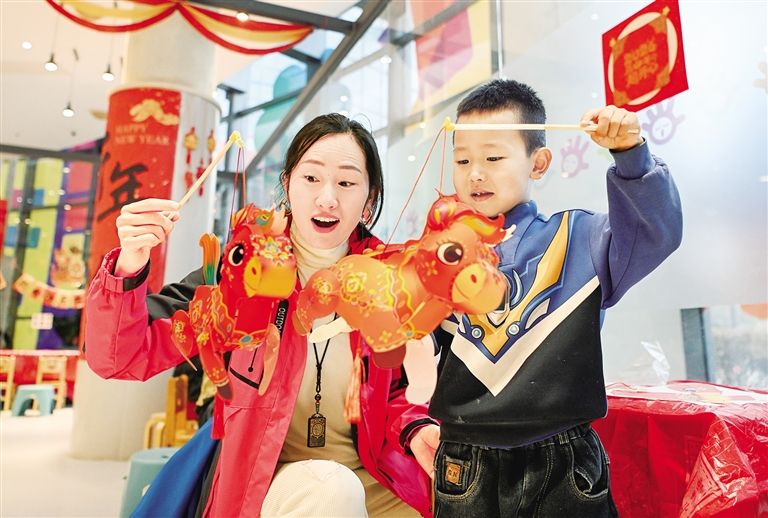 2月28日,呼和浩特市民拿着自制花灯玩耍。当日,呼和浩特市老牛儿童探索馆举办了“福马踏春来 元宵滚圆满”主题活动,众多亲子家庭齐聚一堂,在趣味体验中欢度佳节。此次活动将民俗体验与亲子互动深度融合,让孩子们在动手实践中感受传统节日的魅力。草原云·内蒙古新闻网记者 孟和朝鲁 摄