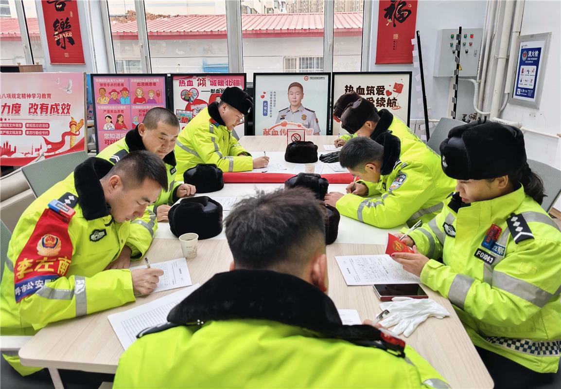 “无偿献血既是奉献爱心、回馈社会的一种方式,也是我们践行雷锋精神、扛起责任担当的具体体现。”辅警刘仲扬说。“连续五年无偿献血,感到特别有意义。穿上警服我们守护道路平安,挽起衣袖我们守护生命健康,今后会继续把这份爱心传递下去。”女民警张洁感言。