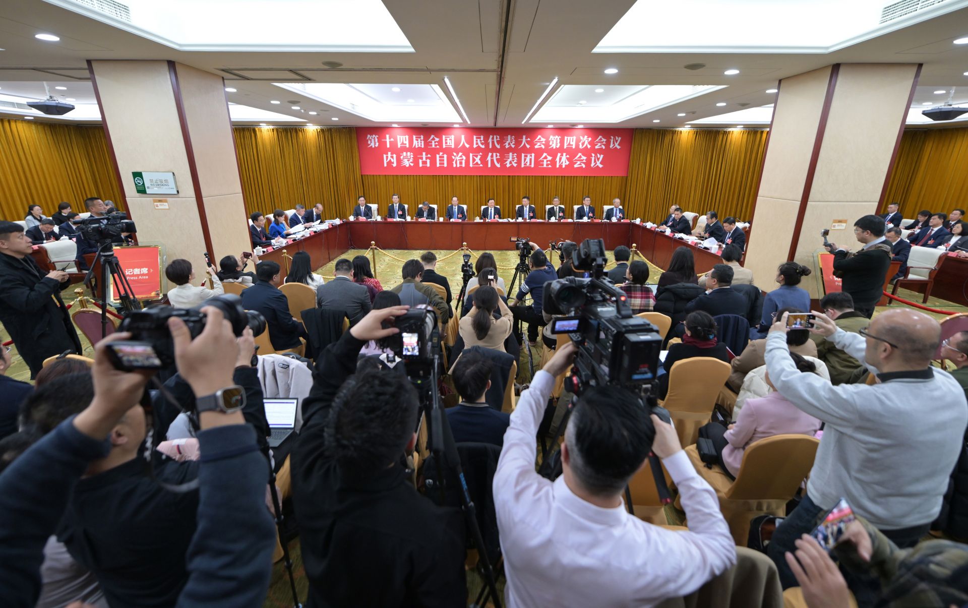 3月6日下午,内蒙古代表团在北京内蒙古大厦举行代表团全体会议,并向中外媒体开放。开放团组活动吸引了人民日报社、新华社、中央广播电视总台、光明日报社、经济日报社、中国日报社、中国新闻社、农民日报社、彭博新闻社等中外媒体记者参加。