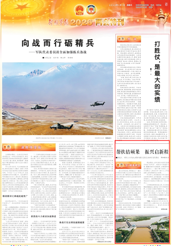2026年3月7日,《解放军报》第05版刊发题为《帮扶结硕果 振兴启新程》的文章,报道刊发了军队人大代表、武警内蒙古总队巴彦淖尔支队警官布和图木尔的口述文章,文章讲述了布和图木尔赴北京参会前,特意去了一趟支队帮扶的内蒙古巴彦淖尔市临河区哈达淖尔村,了解牧民们的所思所盼,并把他们对美好生活的新向往带到了两会会场。