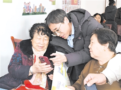 教老年人使用智能手机APP。(固阳县委组织部供图)