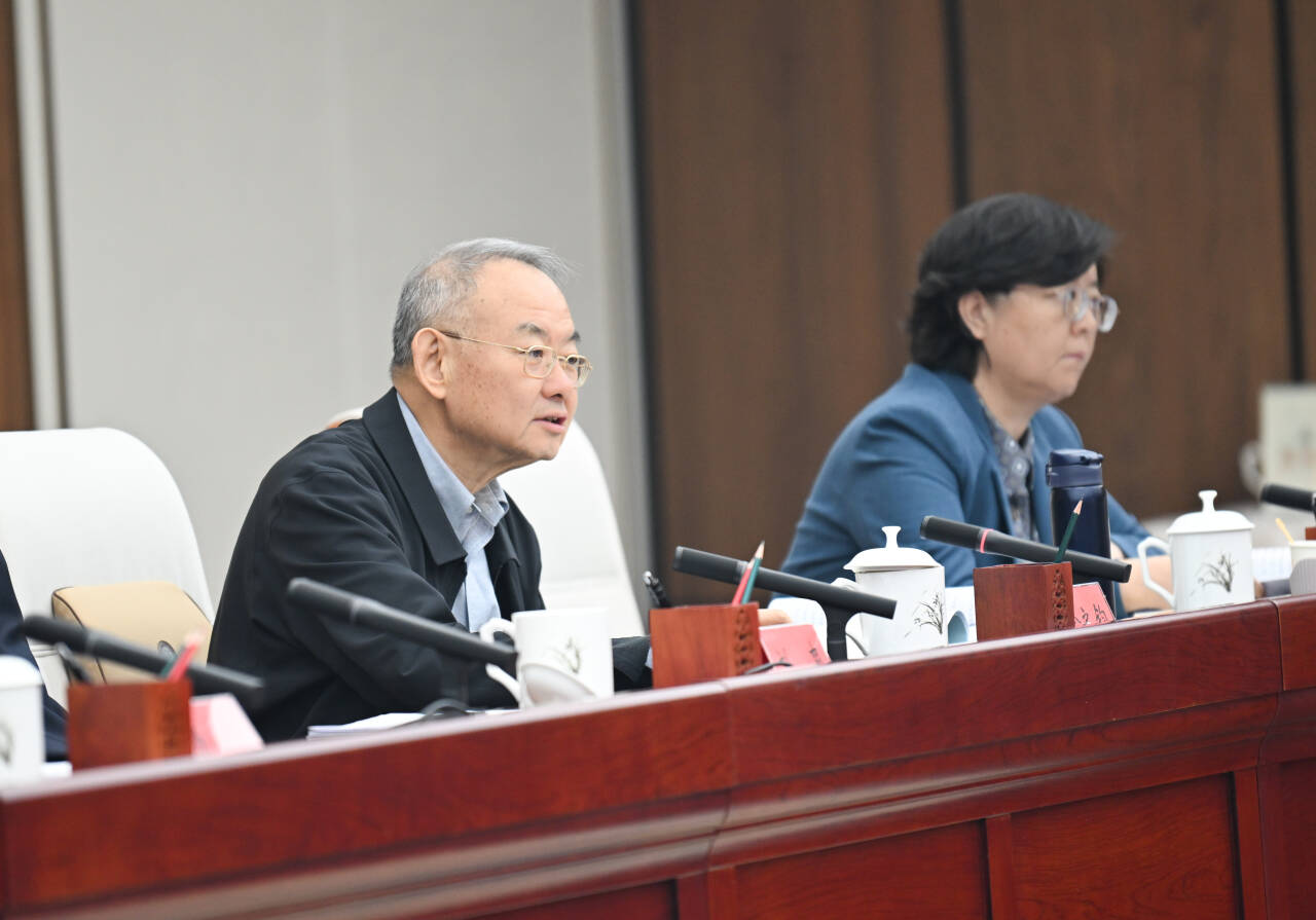 3月9日,全国政协委员纳日碧力戈(右)建议,进一步加强铸牢中华民族共同体意识与中国化时代化的马克思主义民族理论相结合。草原云记者 韩卿立 摄