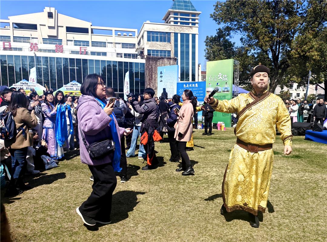 三天时间,三场演出,没有华丽的舞台,没有炫目的灯光。演员们在草坪上、在报告厅里、在剧场中,用最质朴的方式,把草原的声音唱给这座南方校园听。演出结束,学生们围上来合影。有人问马头琴的琴弦怎么做的,有人问呼麦是怎么同时发出两个声音的,有人问包头离上海有多远、坐火车要多久。演员们一一回答,直到暮色四合。