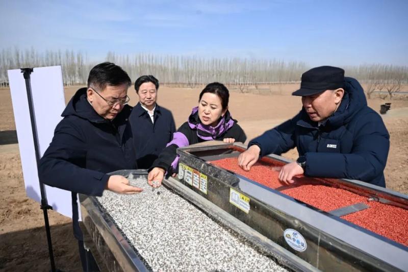 3月15日,包钢在临河农场详细了解种子、肥料等农资准备,询问高标准农田建设进展和优质农产品生产销售情况。草原云·内蒙古新闻网记者 韩卿立 摄
