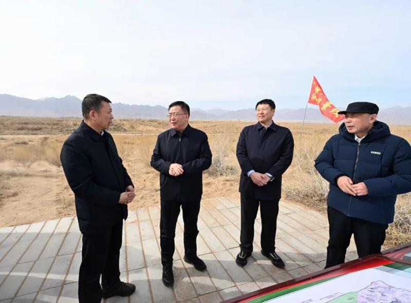 3月14日,包钢来到乌兰布和沙漠综合治理示范区,实地了解“三北”防护林建设进展,察看苗木长势。草原云·内蒙古新闻网记者 韩卿立 摄