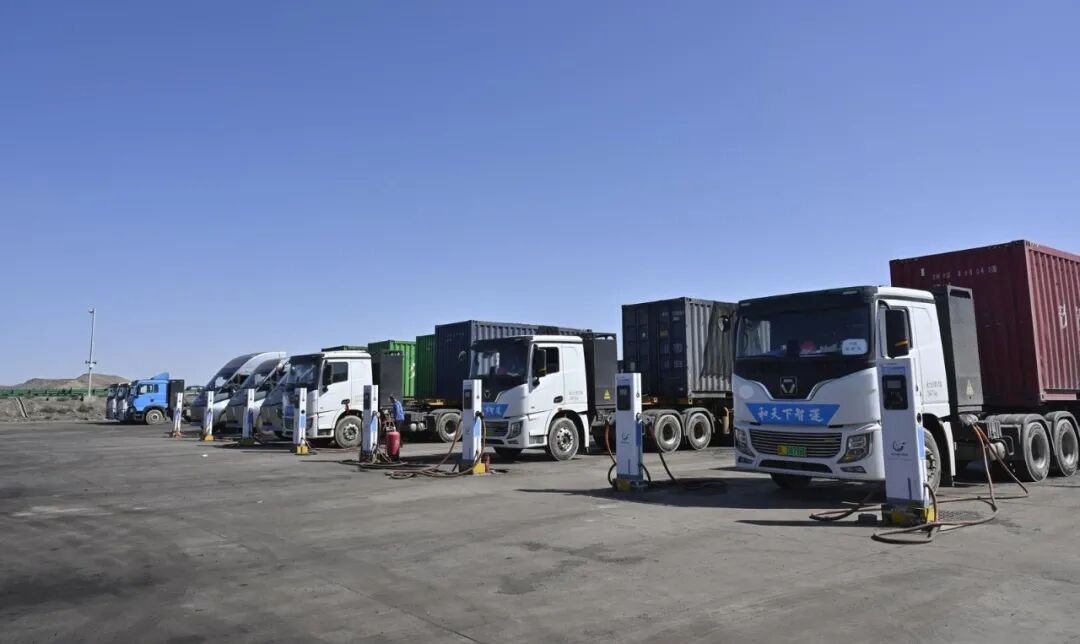 在出境货运车辆待发区,乌拉特中旗铖源贸易有限责任公司通关经理鲁柏麟正安排随车司机为新能源重卡充电。“口岸运输需求大,这些低能耗、高运载、强动力的新能源重卡汽车正好派上了用场。”他说,“为了倡导绿色物流,海关给予新能源车辆优先受理申报、优先查验货物、优先检验放行等通关便利。通得快、运力大,进口量可观增长,公司的外贸底气更足了。”