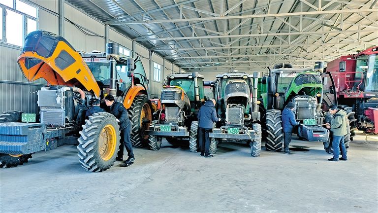 呼伦贝尔市莫力达瓦达斡尔族自治旗的农机手们正逐一对大马力拖拉机开展全方位“体检”与调试。王伟 摄