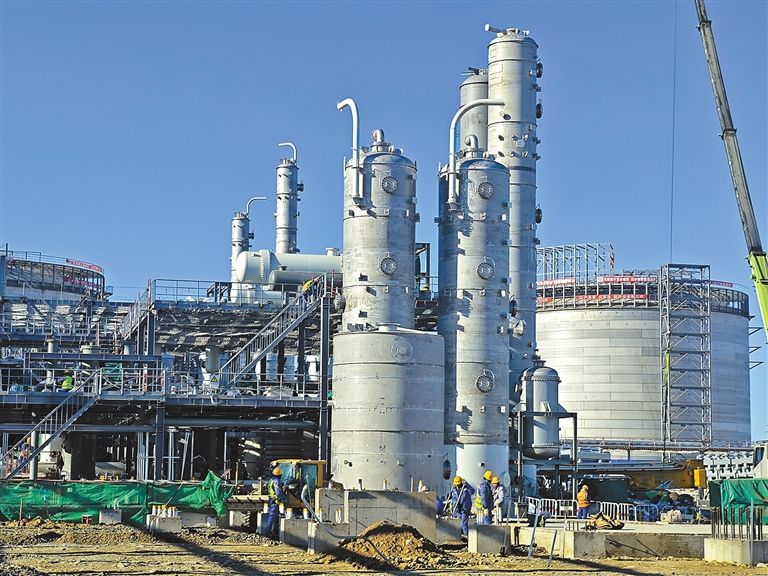 在巨融(通辽)能源有限公司120万吨/年液化天然气项目施工现场,建设者全力推进项目建设。草原云·内蒙古新闻网记者 霍晓庆 摄