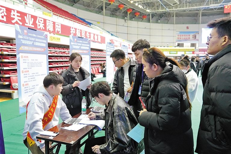 在兴安盟“新春职通车”招聘会现场,求职者排队填写简历。草原云·内蒙古新闻网记者 高敏娜 摄