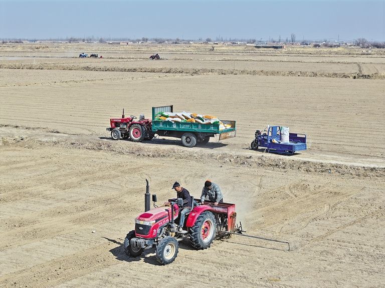 一年之计在于春,春耕备耕是全年粮食生产的“第一仗”。这几天,巴彦淖尔市临河区干召庙镇新丰村一派繁忙,5000亩连片玉米套小麦订单种植春播工作正有序进行,农户们抢抓早春农时,全面铺开小麦播种工作。在呼伦贝尔市莫力达瓦达斡尔族自治旗,冰雪还未完全消融,农机手们已开始对各类大马力拖拉机开展全方位“体检”与调试,为即将全面展开的春耕生产蓄力待发。