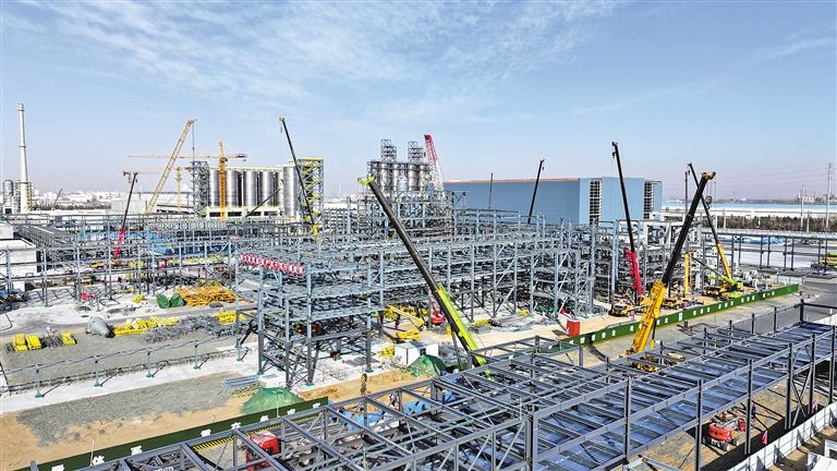 在鄂尔多斯市达拉特旗三垧梁工业园区,内蒙古荣信化工年产80万吨甲醇制烯烃项目建设正酣。李慧龙 摄