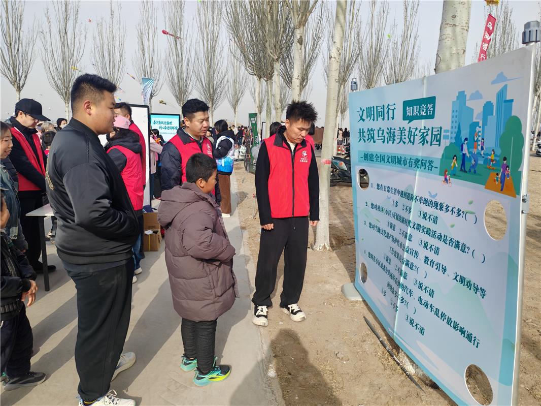 现场的各类体验活动同样圈粉无数。非遗文创市集里,本土非遗项目、特色农副产品、创意文旅好物集中亮相,让市民游客一站式解锁海勃湾的文旅宝藏;创城互动区里,投壶、套圈、飞镖转盘、创城知识问答等趣味游戏前排起长队,市民通关集齐贴纸就能兑换黄河鱼品尝券,品味鲜美的黄河开河鱼。