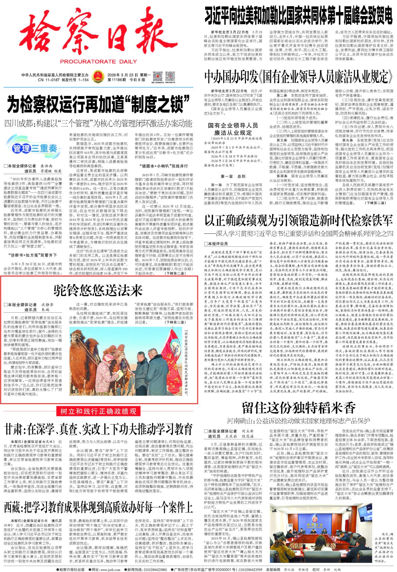 2026年3月23日《检察日报》第1版刊发了《驼铃悠悠送法来》的文章,报道了内蒙古乌拉特后旗检察院“驼背检察”法治服务队,自2024年组建以来,深入牧区开展普法、矛盾调解等服务,不仅成为法律宣讲员,更成为矛盾调解员和群众贴心人。