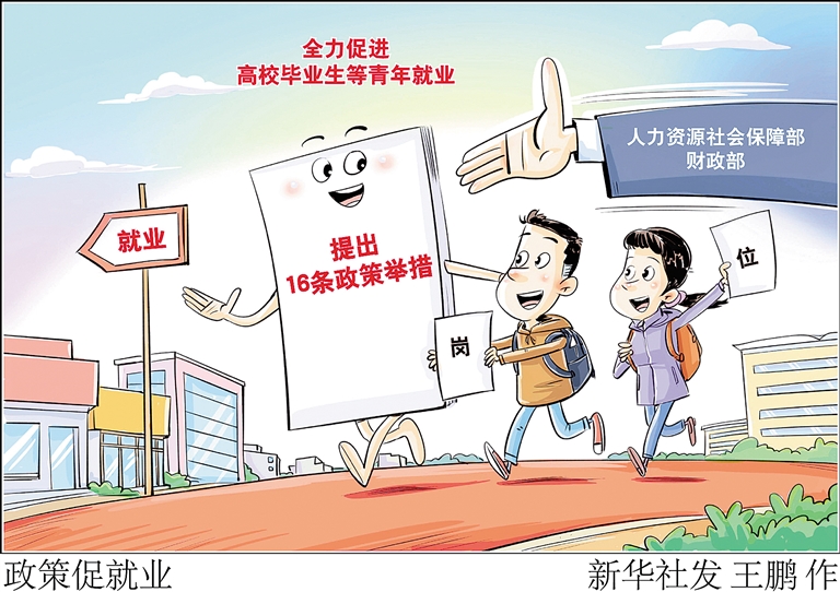 人力资源社会保障部、财政部近日联合印发关于做好2026年高校毕业生等青年就业工作的通知,提出16条政策举措,全力促进高校毕业生等青年就业。新华社发 王鹏 作