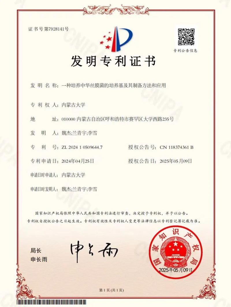 值得一提的是,该项目获得了中华丝膜菌(贺兰山紫蘑菇)的菌种,实现了该菌种的液体培养扩繁,并在贺兰山进行了野外接种,这在国内目前还属首次。项目已获得《一种培养中华丝膜菌的培养基及其制备方法和应用》发明专利授权,提升了成果转化潜力。