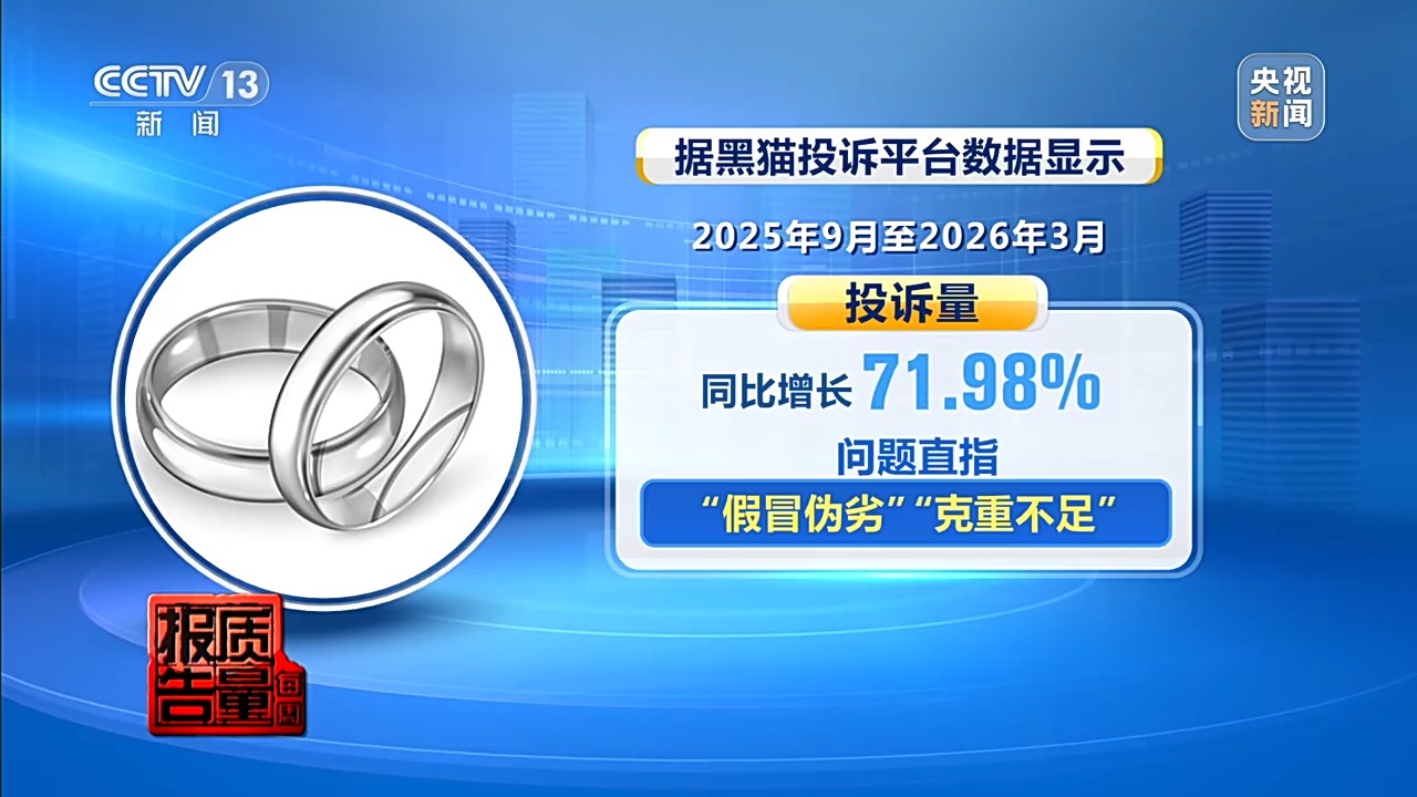 胡女士的遭遇并非个例。据黑猫投诉平台数据显示,自2025年3月白银价格飙升以来,相关投诉激增。仅2025年9月至2026年3月半年间,投诉量同比大幅增长71.98%,问题直指“假冒伪劣”与“克重不足”。