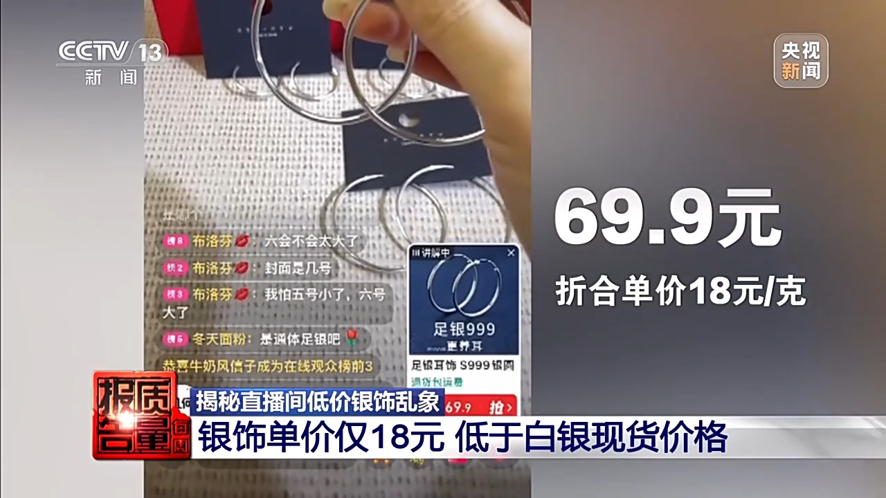 在白银价格高位运行的当下,网络直播间内,不少商家借势推出了低于行情单价的“福利价”、“清仓价”,诱导消费者下单。然而,满心期待的“捡漏”往往变成了“踩坑”。这种远低于原材料成本的所谓“足银饰品”,真相到底如何?市场的乱象之下,究竟是谁在浑水摸鱼?