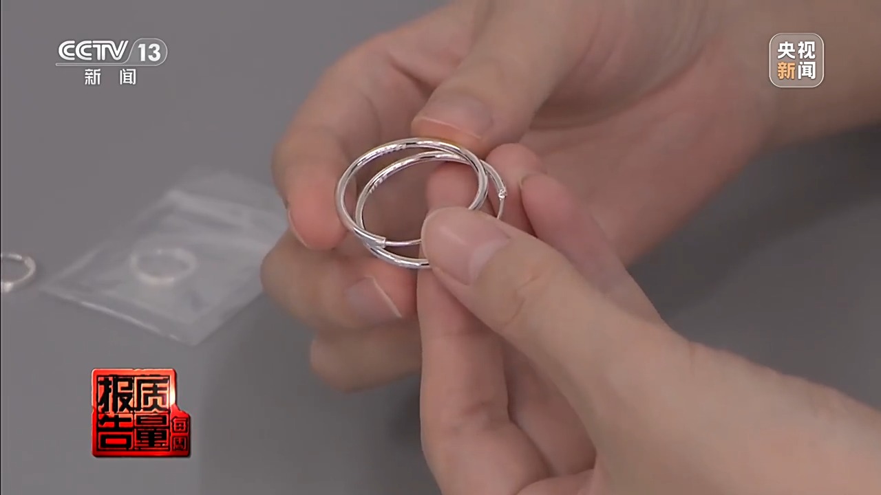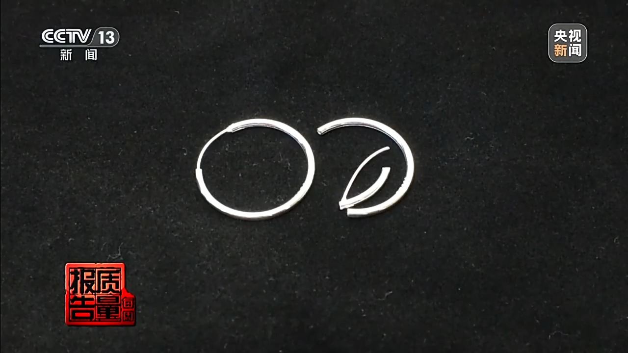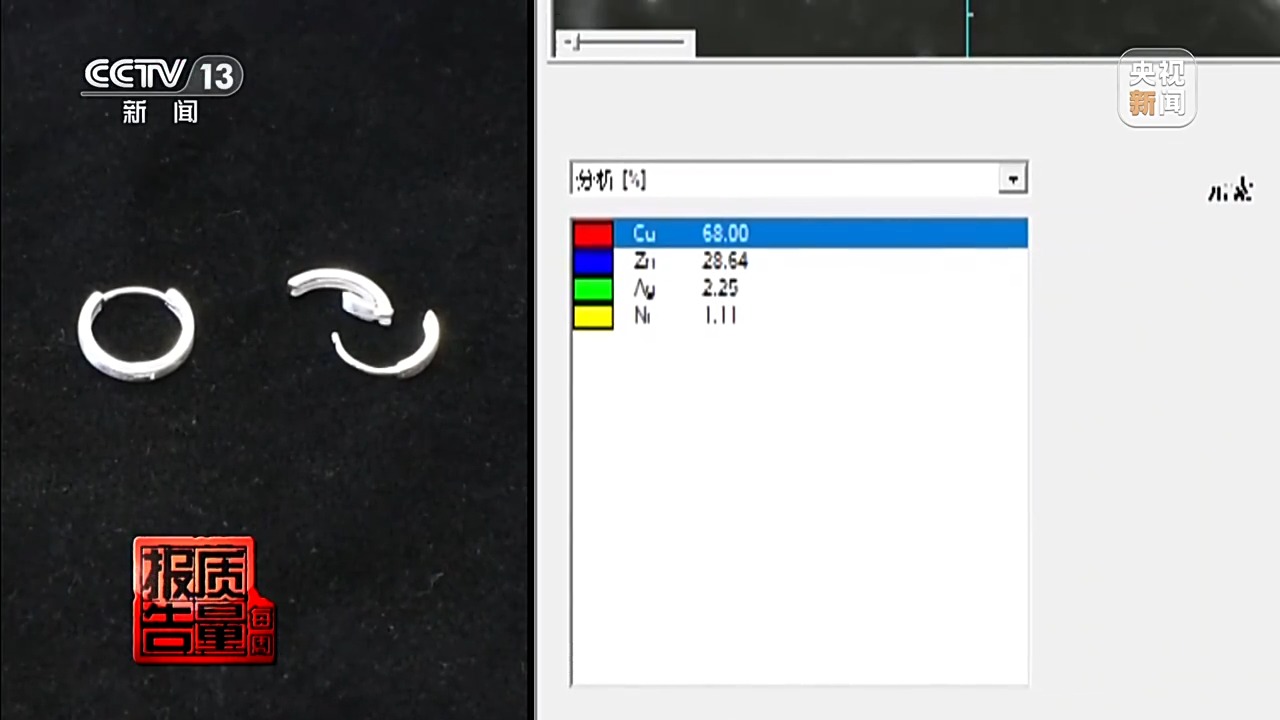 “足银饰品999”直播间宣称“除了银子没有其他杂质”的耳饰,检测发现主体为铜锌合金,实测银含量仅为0.67%;