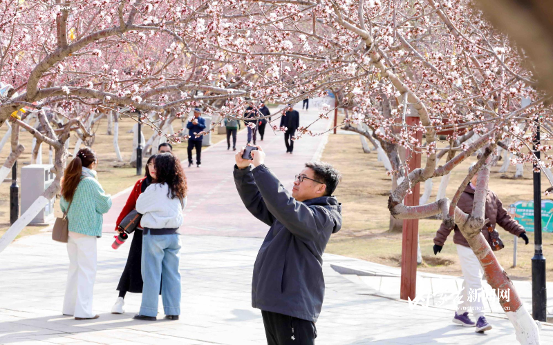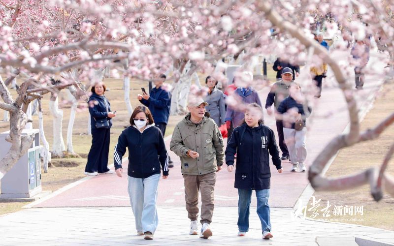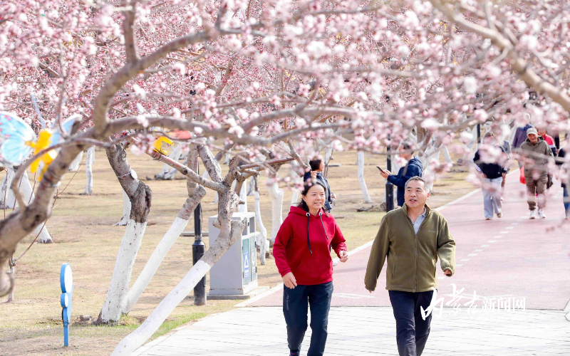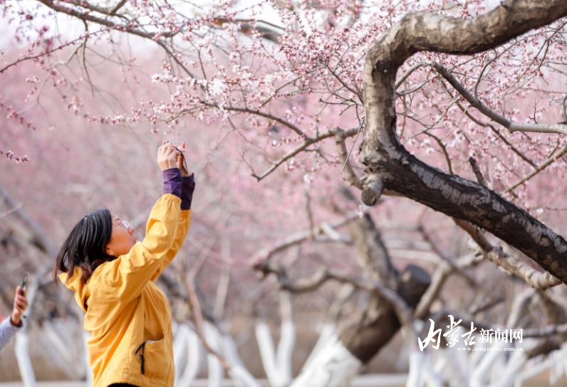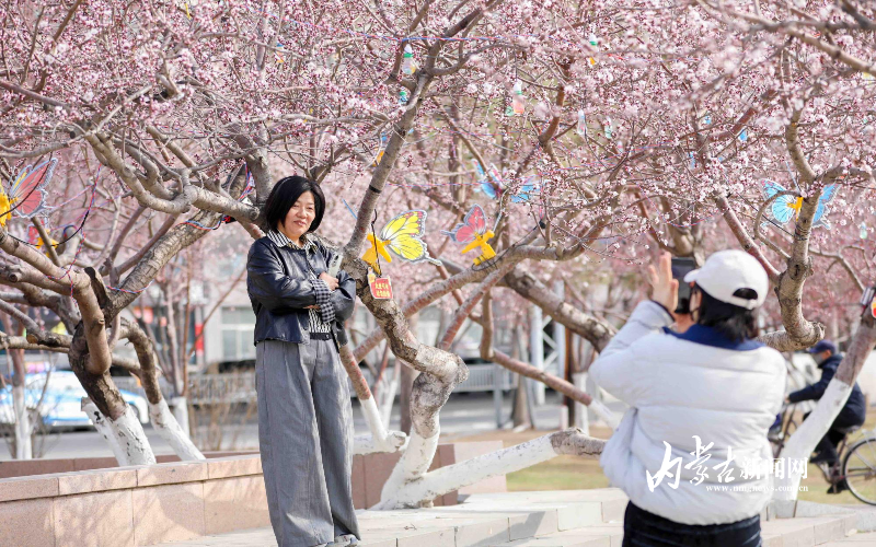 3月30日,呼和浩特市公主府公园春意盎然,不少桃花已经绽放,吸引众多市民打卡。该公园内千余株桃树粉嫩花苞密密缀满枝头,朵朵桃花悄然绽放、烂漫初开。晴空暖阳映衬下,繁花摇曳生姿,满园春意,勾勒出最美青城春光。不少市民漫步园中驻足观赏,纷纷拿出手机定格花开美景,沉浸式感受春日美好。据了解,眼下桃花正值初绽阶段,盛花期即将到来。摄影/草原云·内蒙古新闻网首席记者 牛天甲