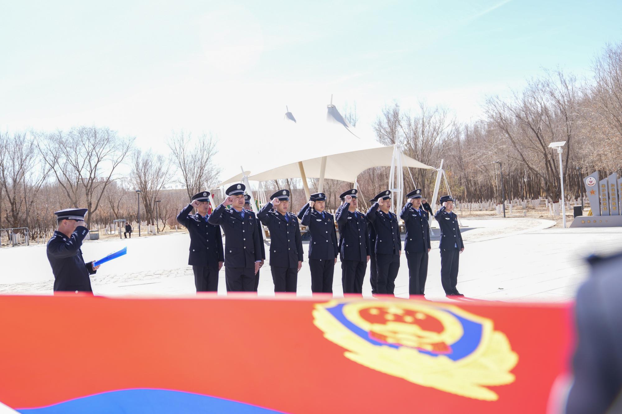 松柏凝翠寄哀思,忠魂不朽励初心。4月2日,在清明节来临之际,内蒙古出入境边防检查总站二连出入境边防检查站组织民警前往驻地革命烈士纪念碑前,开展“致敬革命英烈、激发奋进力量”主题纪念活动。全体民警肃立默哀、敬献白花,面对鲜红警旗高举右拳,重温入警誓词,以铿锵誓言筑牢忠诚警魂,深切缅怀革命先烈的不朽功勋,寄托对英烈的深切追思,传承赓续红色血脉,汲取奋进前行力量。摄影/杨金烨