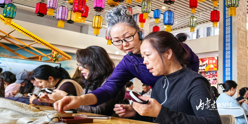 活动现场,巴彦淖尔市乌拉特刺绣代表性传承人娜仁高娃耐心给大家讲解刺绣技巧,从基础的穿针引线到纹样的勾勒、绣制,一步步细致示范。体验者则围坐在一起,凝神专注,手持绣绷,轻捏绣针,跟着老师的节奏慢慢操作。