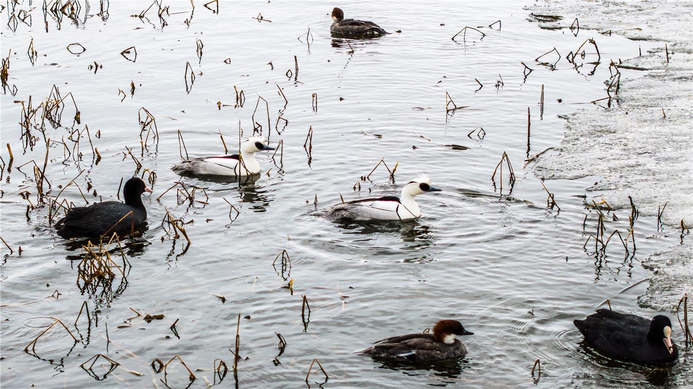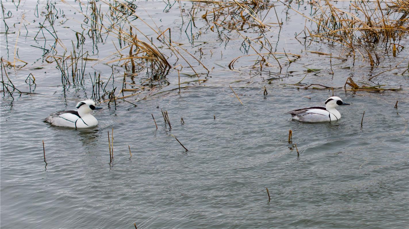 俗称“熊猫鸭”的国家二级保护动物——斑头秋沙鸭(管永新摄)