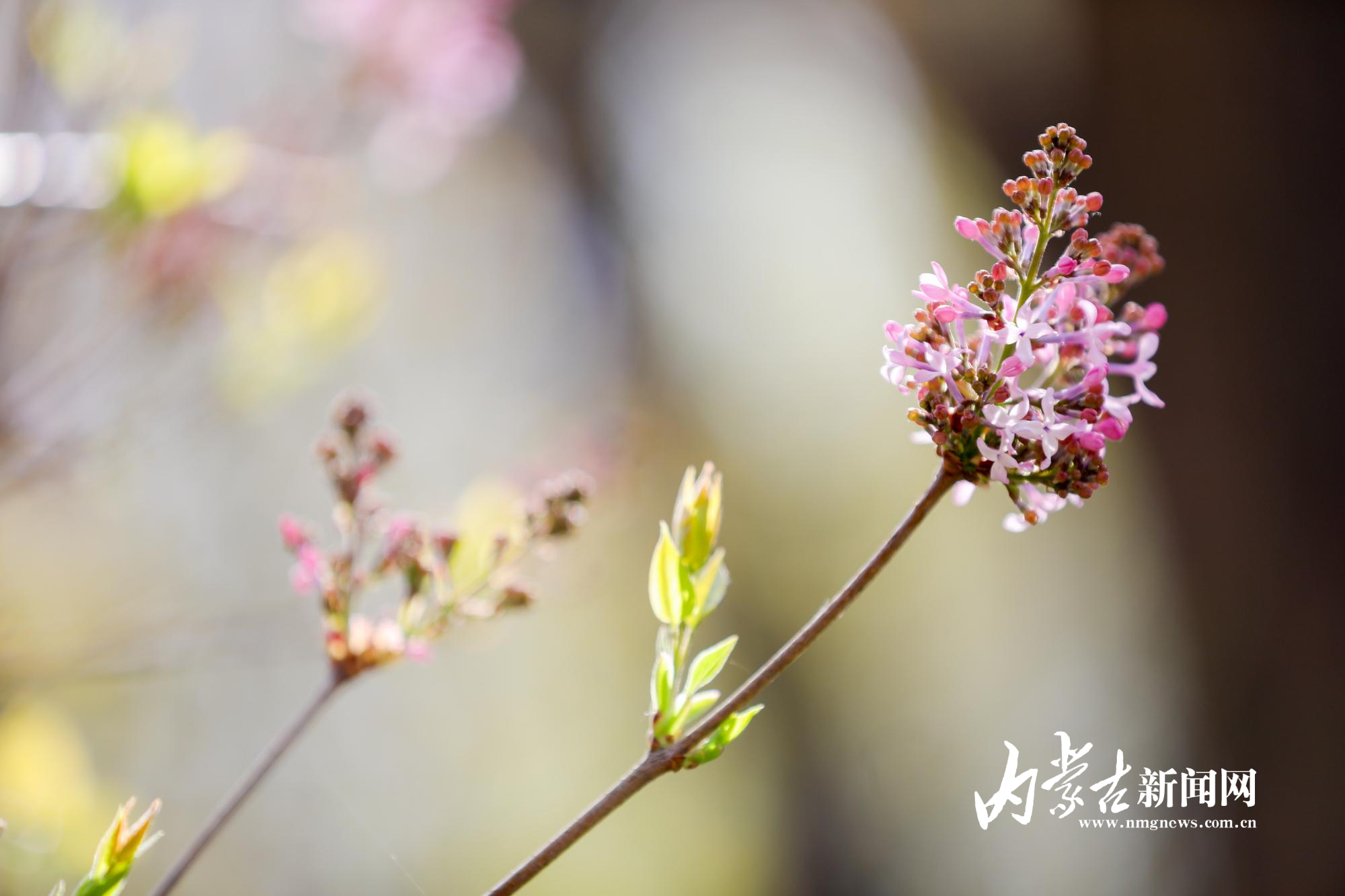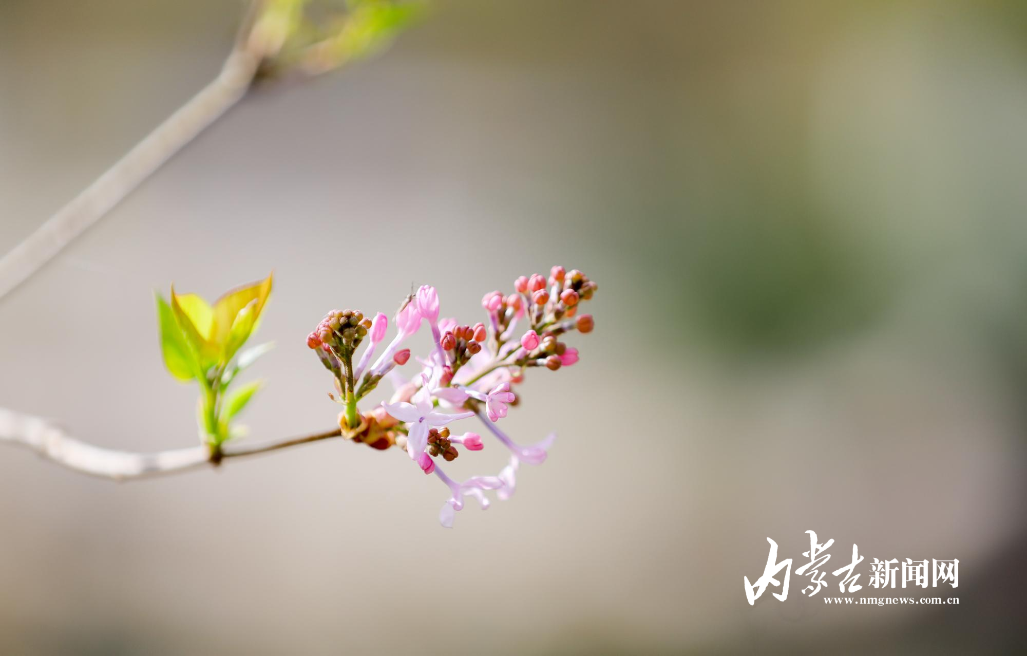 4月14日,在呼和浩特市满都海公园,丁香枝头新蕊初绽,暗香浮动。摄影/草原云·内蒙古新闻网首席记者 牛天甲
